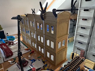 Relief-Industriebau für spätere Gestaltungsmöglichkeiten wie Beleuchtung oder Innenausbau werden Geschossdecken eingebaut. Auch der Gebäudeabschluss wurde begonnen. Die ursprüngliche Idee noch eine Etage drauf zu setzen wurde verworfen , ist jetzt schon riesig. <div class='spacer'></div>