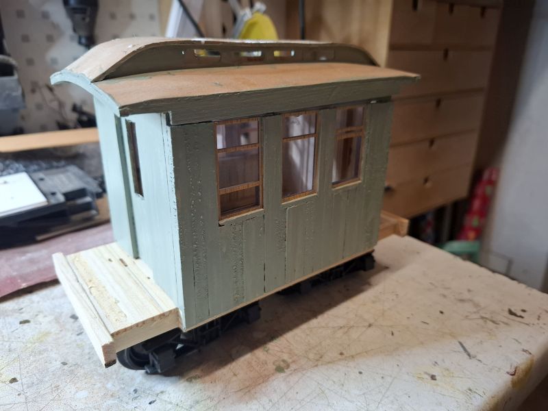 witer gehts mi der Vervollständigung der Wagons, die Dächer werden gestrichen und die Trittstufen sind dran, Geländer ist montiert <div class='spacer'></div>
