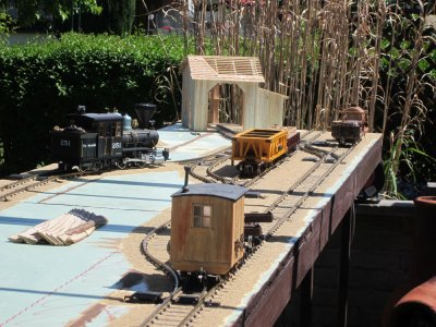 2 Segmente mit Dämmung und Gleisen, Nr 5 kann sich auch schon mal in Szene setzen, Blick in Richtung Sägewerksplatz, in der anderen Richtung werden die fertigen Bretter zur Stadt gefahren