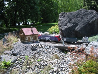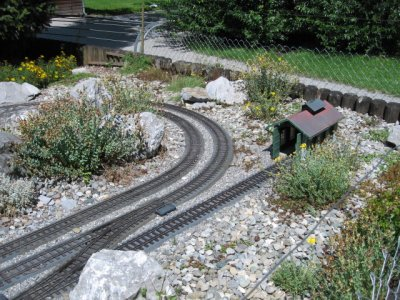 Bahnhofseinfahrt mit Schuppen für die Rangierlok