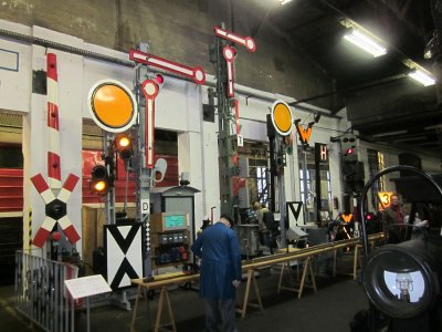 anhand einer Vorführanlage wurde die Funktion und Aufgabe der Signale erklärt, hier kümmerte sich ein rühriger Mitarbeiter um die jüngeren Fans, die Signale sind mit den Orginalen gekoppelt.
