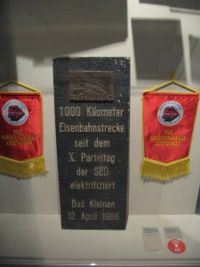 prangte mal an einem Obelisk in Bad Kleinen auf dem Bahnhof,galt unter Eisenbahnern lange Zeit als verschollen genauso wie die Tafel zum 750 Kilometer in Rostock auf dem ehemaligen Bahnsteig 8