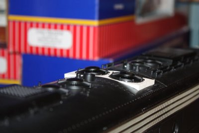 Die alte Dampfheizung von Aristo wurde komplett entfernt und die Löcher mit einer 0,2 mm Kunststoffplatte verschlossen. Die Schalldämpfer aus Kunstoffrohr und Spritzlingen eines Modellbausatz hergestellt. Das Klimagerät ist von Ozark.
