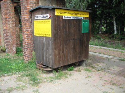 die Littfasswerbung des Feldbahnmuseums ,ein ehemaliger Wagen der Feldbahn