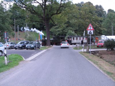 bei unserer Ankunft kreuzte der Zug gerade unsere Straße