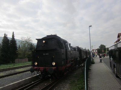 Zug mit BR64 kurz vor Abfahrt in Ebermannstadt