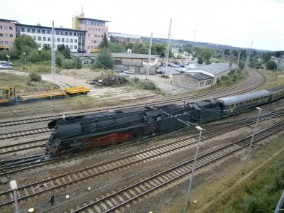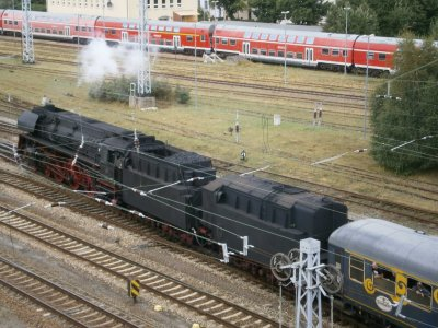 Ankunft der 01 1533 mit ihrem Sonderzug. Der 2. Tender ist von der 01 1066 als Wasserreserve.