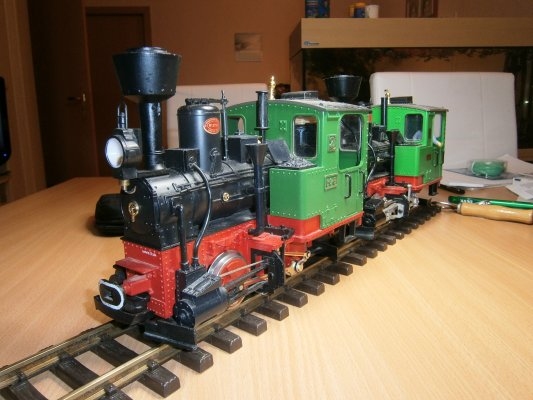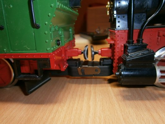 Durch diese Kupplung werden beide Loks angesteuert. Die Schienenräumer mußten auch noch angepasst werden.