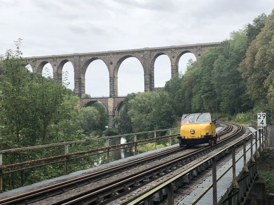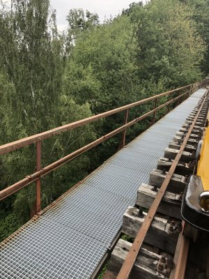 Blick auf die Ausziehvorrichtung auf der Brücke , dient dem Schienenwechsel