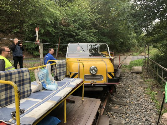der Endpunkt der Fahrt ist erreicht , die Trabis werden gedreht