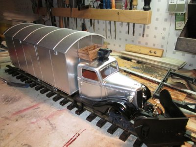 für den zweiten Waldbahnzug war schon länger ein Caboose vorgesehen, dazu wird, auch für die folgenden Wagons, das Grundgestell, ein Plattformwagen gefertigt auf dem jetzt der Rohbau des Caboose steht