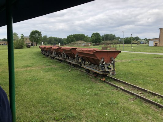 Start mit der Feldbahn zu einem ehemaligen Stich (Abbauort für Ton)