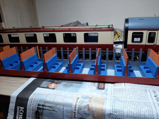 Diesmal hat D. Wilfert im Wagen Platz genommen und betrachtet den Entwurf für ein neues Gartenbahnmodell.