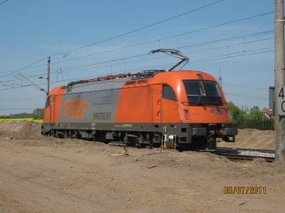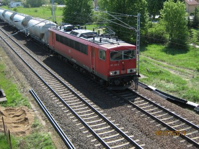 Baureihe 250 der ehemaligen DR heutige BR 155 vor einem Zementzug für Mukran.Der Zement wird dort für die Betonummantelung der Erdgasrohre die in der Ostsee verlegt werden gebraucht.