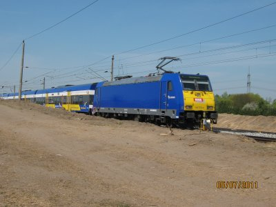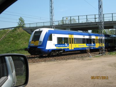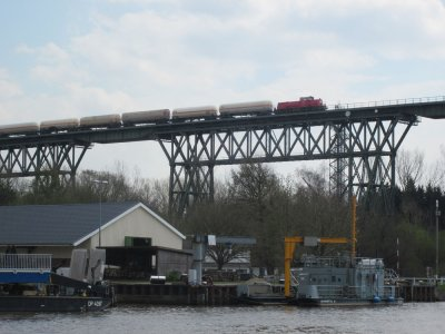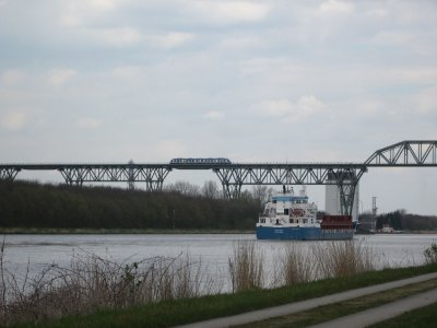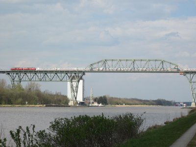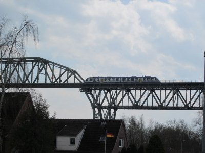 Bei einer Radtour am Nord-Ostseekanal fotografiert, es handelt sich um die Strecke Wilster-Sankt Michaelisdonn, ist schon imposant und es war interessanter Zugverkehr zu beobachten, hier glaube ich Metronom