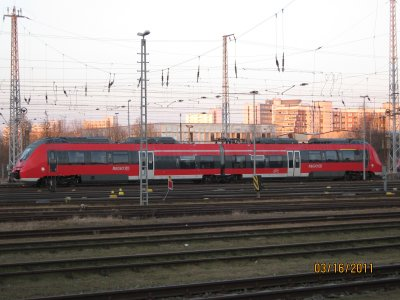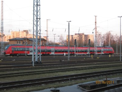 nach einem kurzen Gastspiel im vergangenem Jahr sind sie im März 2011 wieder in Rostock zu sehen.Der Talent 2 Triebwagen,18 Stück haben eine vorläufige Zulassung vom Eisenbahn Bundesamt erhalten.Hier auf dem Hauptbahnhof zu sehen,wahrscheinlich werden Schulungsfahrten durchgeführt.