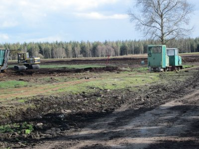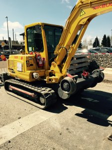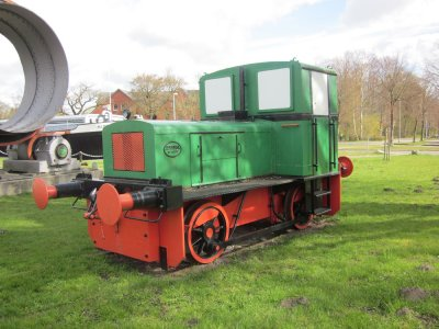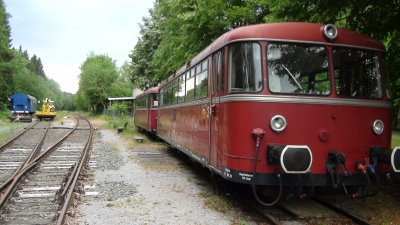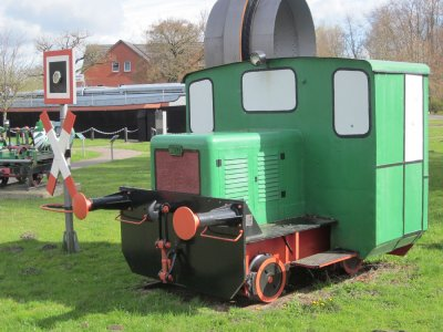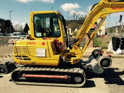 die hintere Achse mit dem Kettenantrieb. Viel Kraft bringt der Bagger nicht auf die Gleise aber dafür ist er klein. Im Kabeltiefbau neben den Gleisen ist er bestens geeignet.