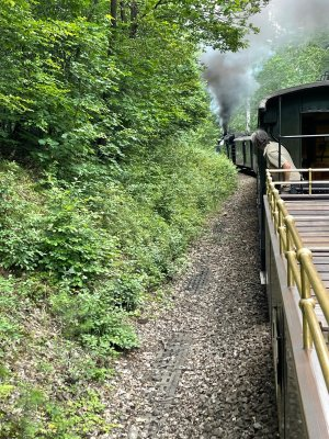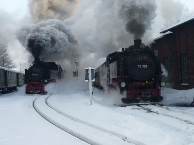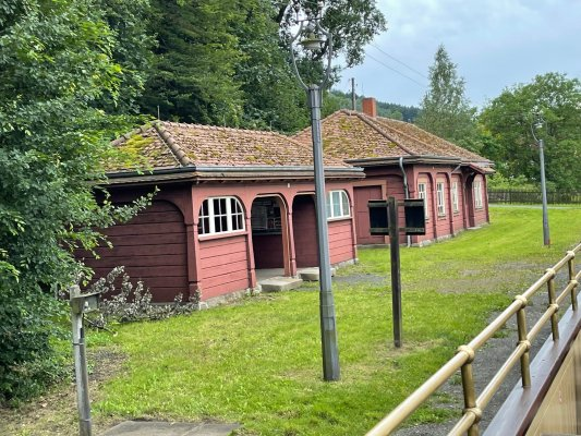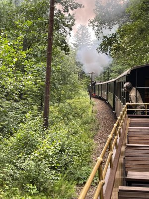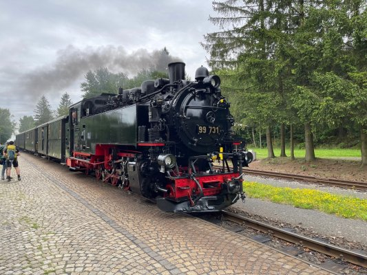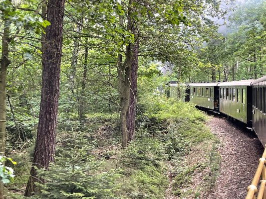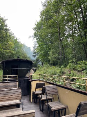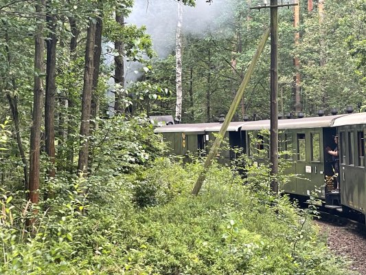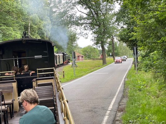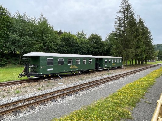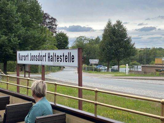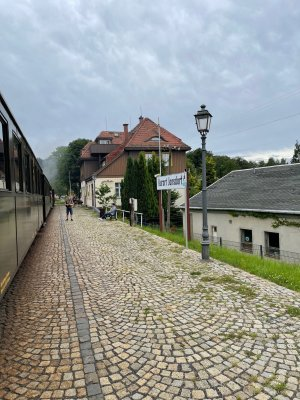 Ankunft in Jonsdorf , abgestellte Wagen als Ferienunterkunft
