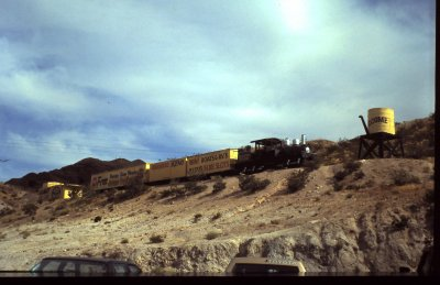 Wagen und Loks wurde aufgestellt für Werbezwecke unweit von Las Vegas vom Hoover-Damm kommend