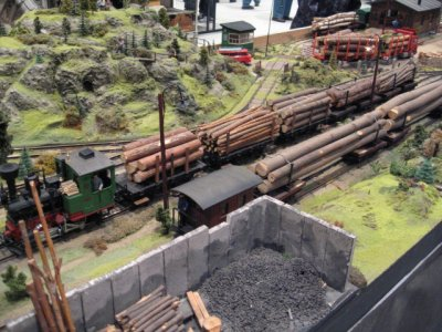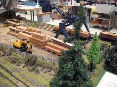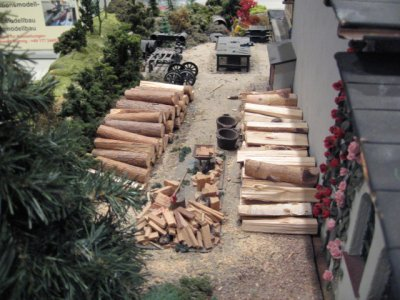 eine IIm Anlage als Waldbahn mit dem Thema Holz.