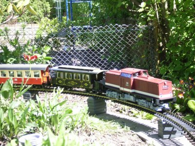 Gartenbahn im Blumenbeet (Wolframsgrund)