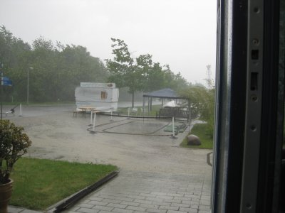 Das schlechte Wetter am Samstagabend. Bis auf die Pavillons konnte noch alles schnell in Sicherheit gebracht werden