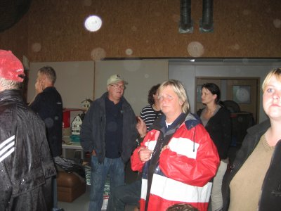 Alle Stammtischmitglieder warten in Sorge um die Anlagenauf das Ende des Regen.