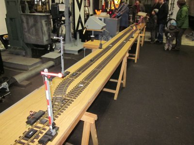 anhand einer Vorführanlage wurde die Funktion und Aufgabe der Signale erklärt, hier kümmerte sich ein rühriger Mitarbeiter um die jüngeren Fans, die Signale sind mit den Orginalen gekoppelt.