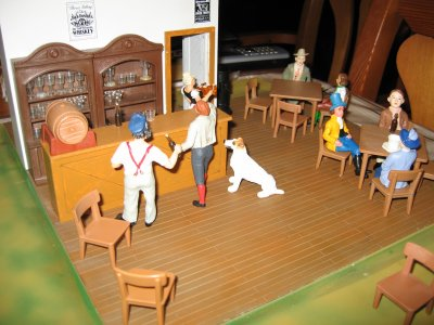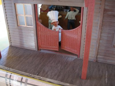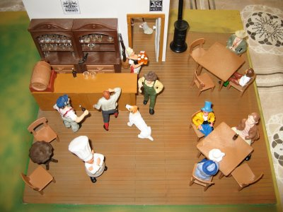 weitere Details und Einrichtungsgegenstände sind hinzugefügt, die Figuren stammen vom Flohmarkt und sind aus dem Film Ratatouille der grimmig schauende Koch nimmt im Gastraum Aufstellung