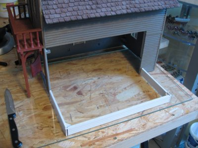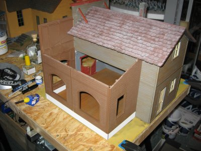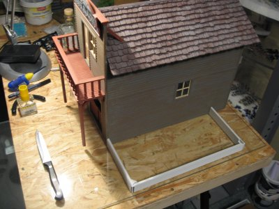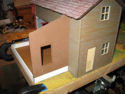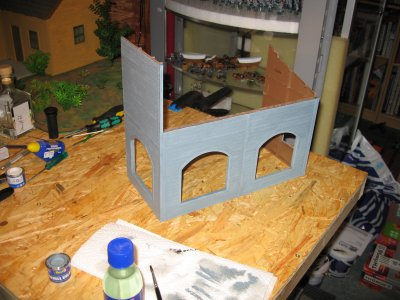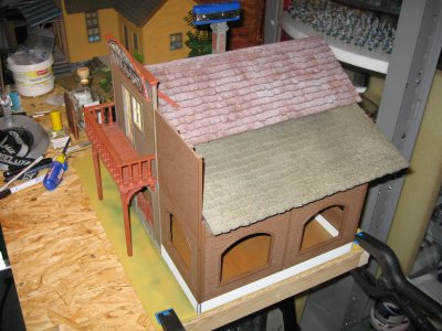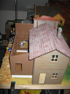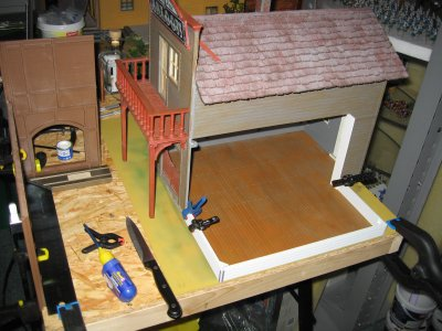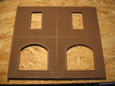 Teile von Piko die zum Einsatz kommen werden.Ausschlaggebend sind die großen Fenster die ein Saloon nun mal haben sollte.Von Piko gibt es einmal Holzteile und einmal gemauerte Häuserteile,leider fehlt der untere Eingangsbereich bei beiden.Das schränkt die Handlungsfähigkeit etwas ein.