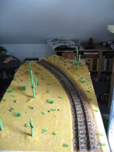 erste Pflanzungen wurden vorgenommen und Grundplatten für Playmobil-Kakteen wurde eingearbeitet