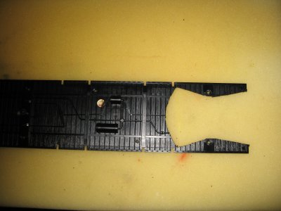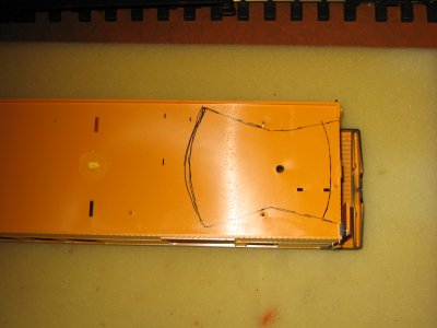 das vordere Drehgestell mit dem Antrieb soll etwas nach vorne verlagert werden,deshalb sieht der Ausschnitt nicht Seitengleich aus. Im Bereich der geschlossenen Bühne wird der benötigte Platz in Anspruch genommen