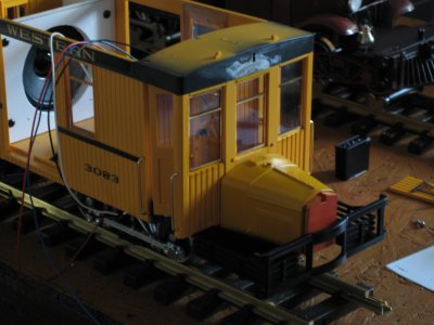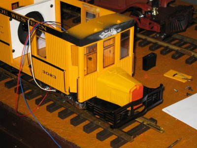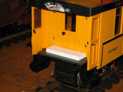 ein neuer Verbindungssteg wurde angefertigt und die beiden Tritte daran angeklebt, somit passt es von der Höhe für den Schwenkbereich des Antriebsdrehgestelles