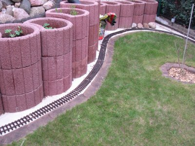 etwa 5 m fehlen noch bis die zweite Strecke geschlossen ist. Hier sind bereits die ersten Meter des fehlenden Stückes verlegt.