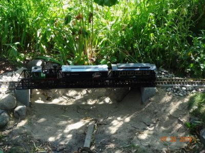 auf dem Weg zur nördlichen Wendeschleife muss der Zug eine kleine Brücke passieren