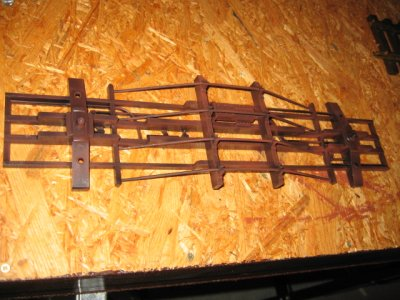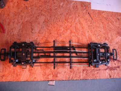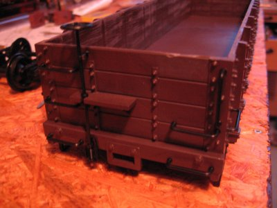 der Wagenkasten wird nun mit den Handgriffen und der Handbremse vervollständigt. Die Handbremsstange wurde an die neue Aufbauhöhe angepasst ,durch herausschneiden. Die Schnittstelle liegt in Höhe der Halterung am Wagenkasten.