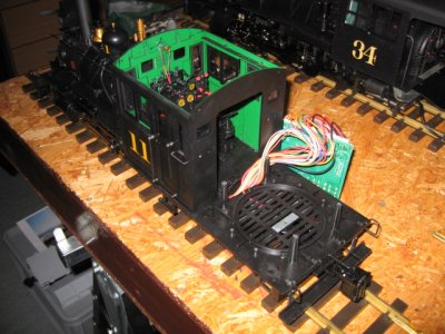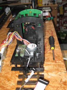 der Tender geöffnet und die original Platine gelöst, das Dach des Führerhauses musste abgenommen werden damit das Tendergehäuse nach oben abgenommen werden kann.