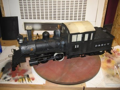 nun wird die Lokomotive umbeschriftet ,alle alten Bezeichnungen wurden mit Mattschwarz übergemalt, der Versuch die Beschriftungen mit Decallöser von Champex - Linden zu entfernen schlug fehl.Farbverdünnung zu benutzen habe ich mich nicht getraut.