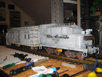 der zweite Wagen ensteht aus einem Tender , den ich noch von einem anderen Umbauprojekt übrig hatte. Er übernimmt die Kohleversorgung der Fräse , halt ein Tender.