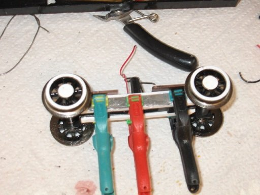 da das Drehgestell der Stromaufnahme dient werden die Hohlräume aussen mittels Blei ausgefüllt , das erhöht den Druck aufs Gleis