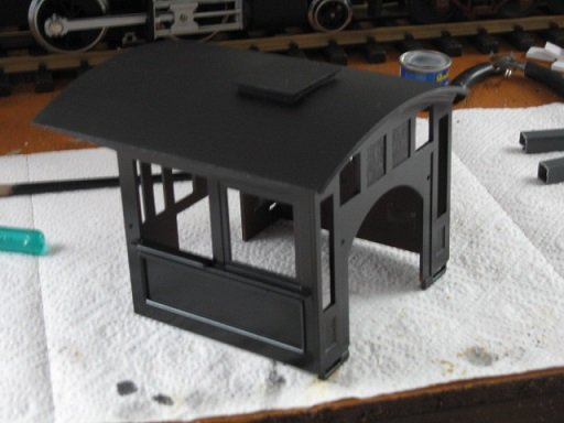 auch das Führerstandgehäuse ist dran und wird von braun auf schwarz gebracht