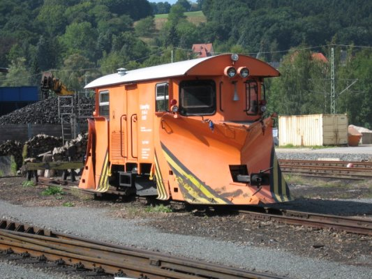 in Freital abgestelltes Baugerät für die Schmalspur als auch für die Regelspur einsetzbar