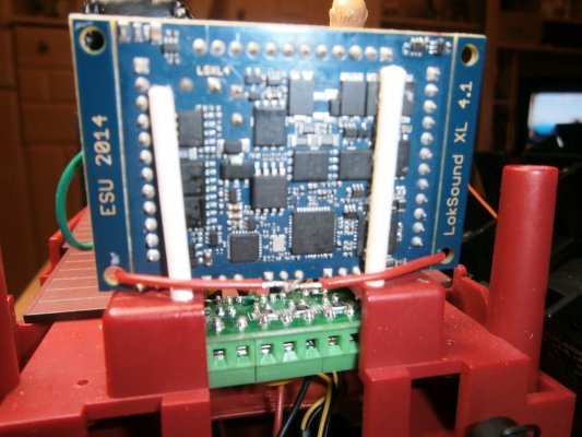 Der Decoder hat jetzt einen festen Standplatz. Wozu die Stäbe von den Schokoweihnachtsmännern doch alles gut sind.