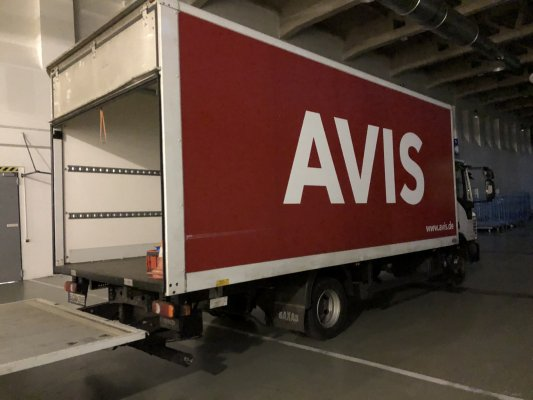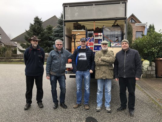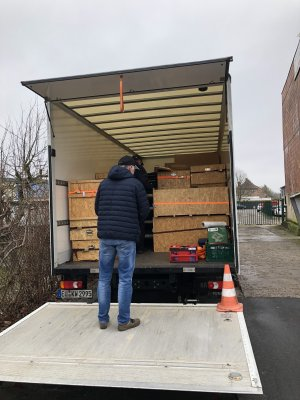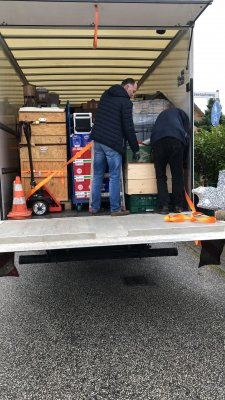 die Oldesloeer sind mit dem LKW in Rostock angekommen , meine Kisten werden geladen