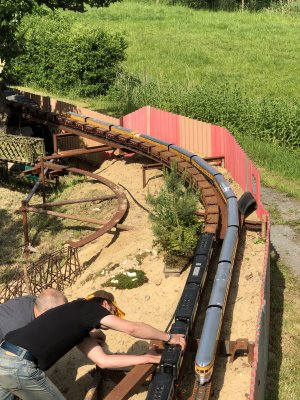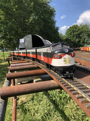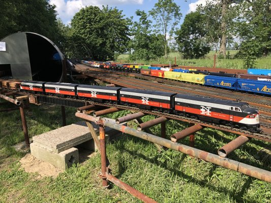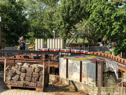 in Hintergrund eine Edelstahlröhre , sie dient als Schattenbahnhof und ist begehbar