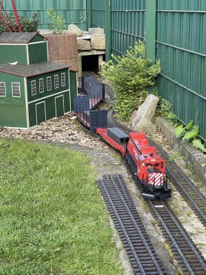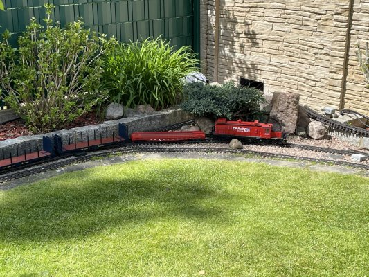 nachdem die Kehrschleife und der Yard durchfahren sind taucht der Zug wieder auf der Terrasse auf