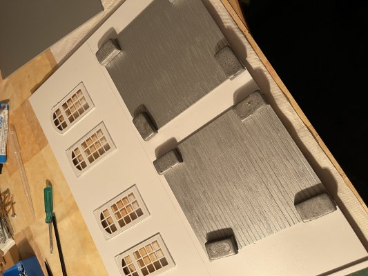 Die Tore für die Rückfront werden eingesetzt , angefertigt aus Hartschaumplastig geritzt