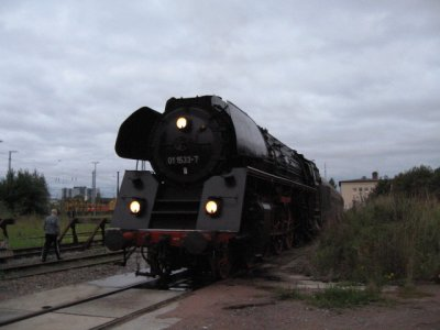 Baureihe 01 auf dem Rostocker Haupfbahnhof,stand über Nacht in Rostock anläßlich der zweitägigen Sonderfahrt Mit Dampf durch Deutschland im Rahmen 175 Jahre Eisenbahnen in Deutschland