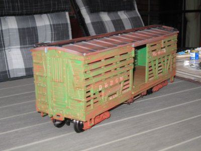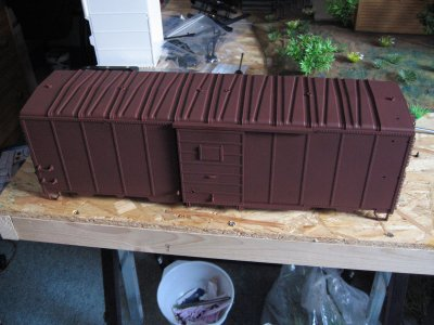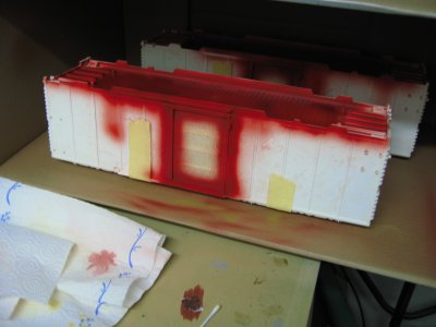 erster Wagen fertig nach dem Rettungsversuch, hatte den Klarlack zu sehr mit Wasser verdünnt und das ergab einen milchigen Überzug.Der Rettungsversuch war ein Klarlacküberzug mit Lösungshaltiger Farbe.
