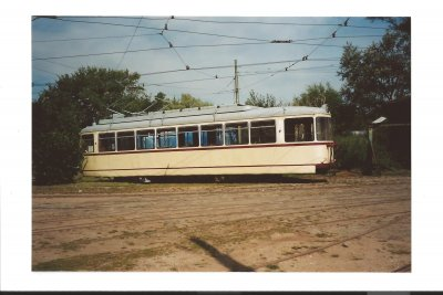 vor dem Empfangsgebäude fährt eine Straßenbahn auf einem Rundkurs ca.1,5 km lang mit historischen Straßenbahnfahrzeugen.